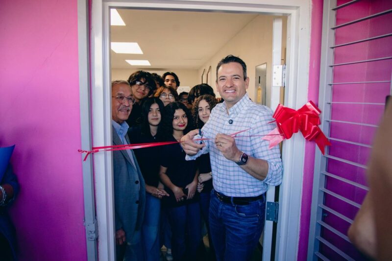 *_H. Ciudad de Chihuahua, Chih. A 11 de abril de 2025_*.- El alcalde Marco Bonilla, acompañado del presidente de la Academia de Matemáticas y Ciencias de Chihuahua Manuel Milán, cortaron el listón inaugural del salón dentro de la Casa de la Juventud, donde las y los jóvenes de preparatoria tomarán cursos y capacitaciones.