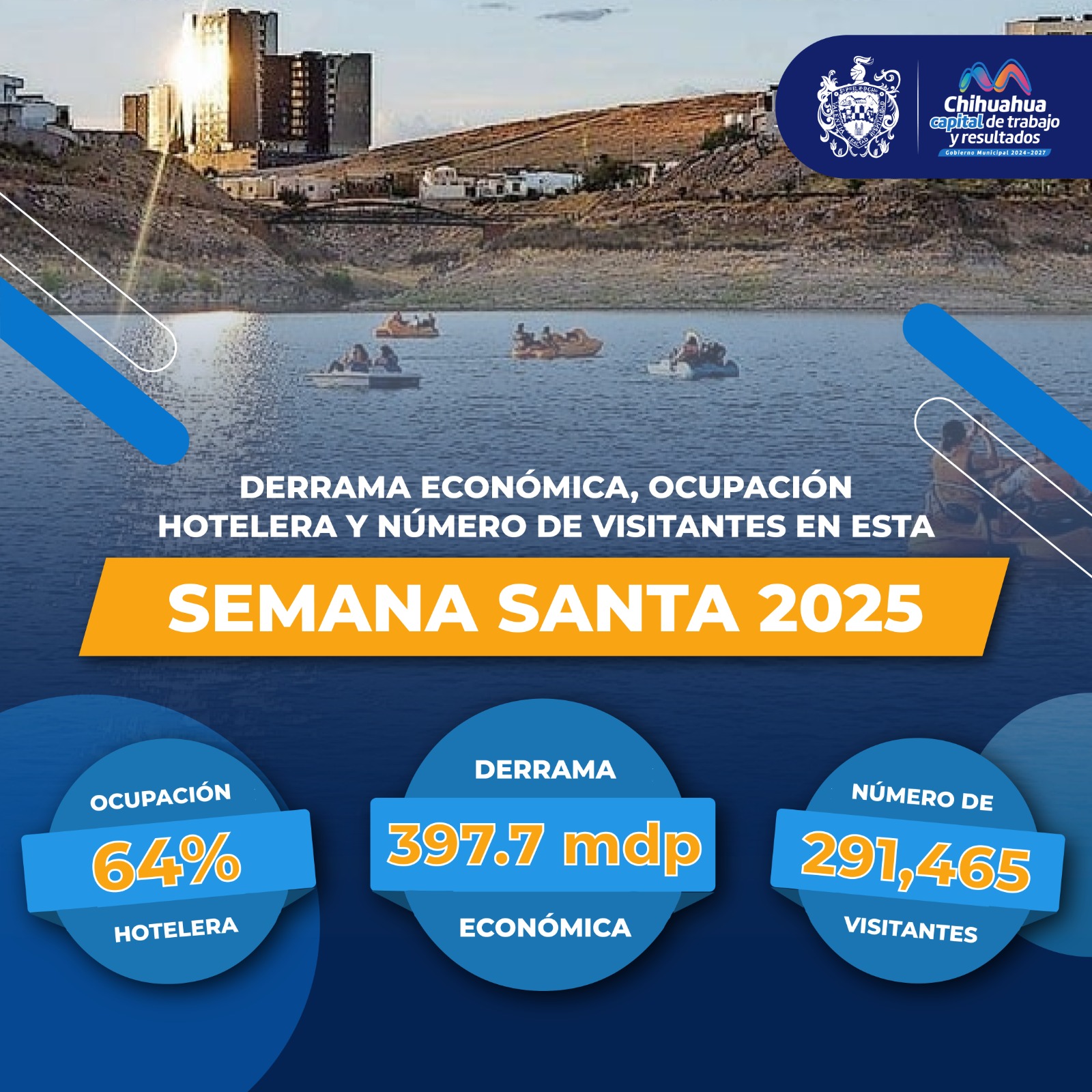 H. Ciudad de Chihuahua, Chih., a 21 de abril de 2025.-*_ El Gobierno Municipal, a través de la Dirección de Desarrollo Económico y Competitividad, informa que durante el periodo vacacional de Semana Santa 2025 se registró una derrama económica estimada en 397.7 millones de pesos, reflejo de la positiva respuesta de la ciudadanía y visitantes a las diversas actividades turísticas, culturales y recreativas ofrecidas en la ciudad.