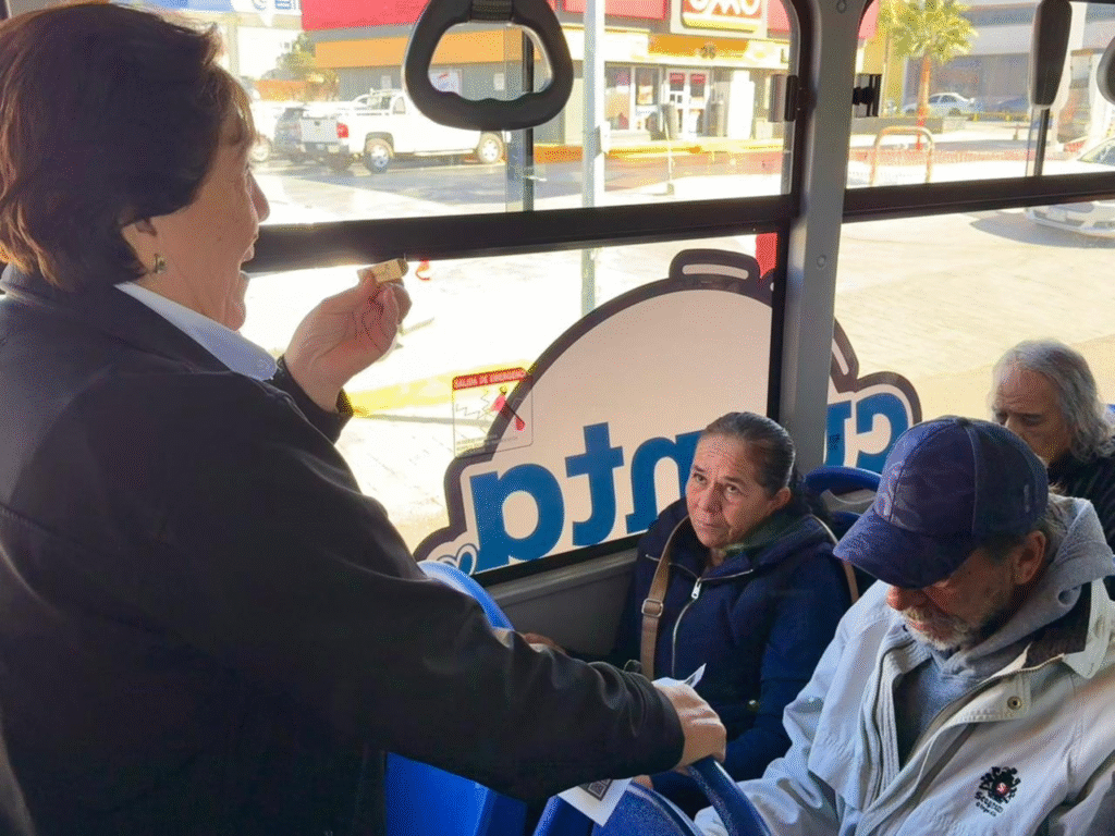 Con el objetivo de detectar de primera mano las problemáticas que enfrenta la ciudadanía y brindarles solución, la regidora Lupita Borruel realizó un recorrido a bordo del transporte público, donde dialogó directamente con las y los usuarios.