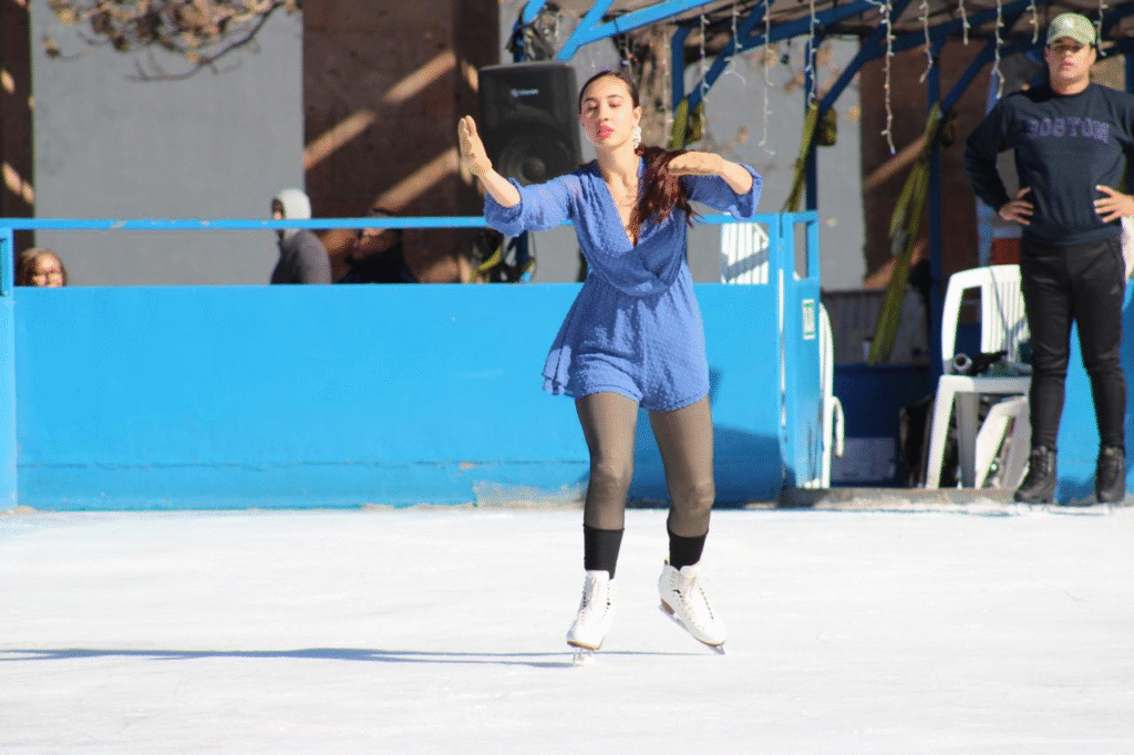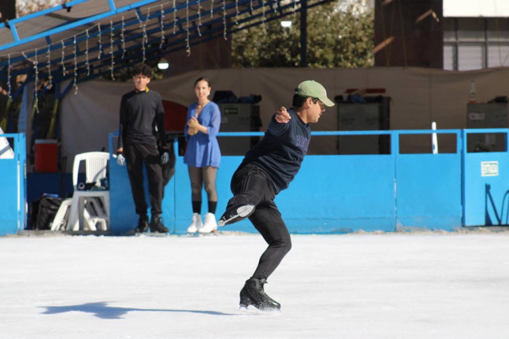 Ángel Amitael Gamboa, ex patinador artístico con experiencia internacional en competencias como Disney On Ice, dirigió una sesión de entrenamiento con sus alumnos. “Cada diciembre, esta pista nos da la oportunidad de recuperar lo que no podemos practicar el resto del año. Es un deporte exigente, pero hermoso, y en Chihuahua hay talento que merece ser visto”, comentó Gamboa, quien también es psicólogo y psicoterapeuta, pero nunca ha dejado de lado su pasión por el patinaje.