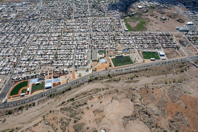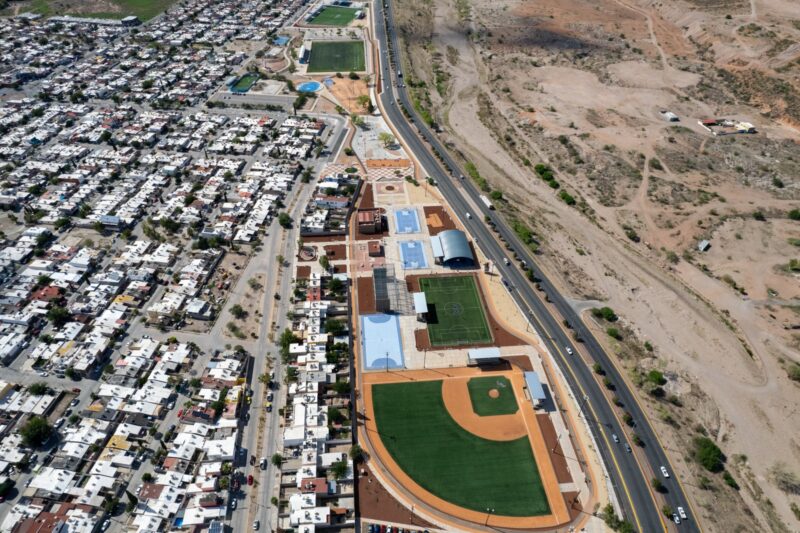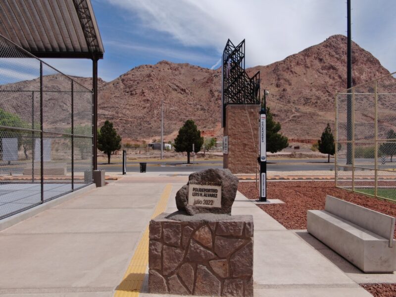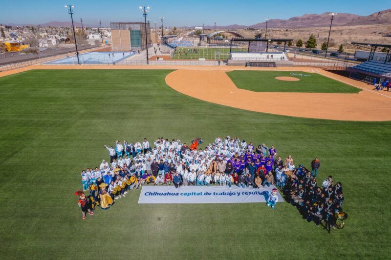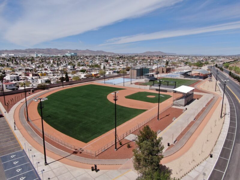 Cabe destacar que el Polideportivo está pensado también para las familias chihuahuenses, por eso fueron incluidas áreas verdes con sistema de riego, un edificio administrativo, área de juegos infantiles, área para aparatos de ejercicio, área para mesas de ajedrez, circuito, andador peatonal y ciclista, iluminación led con postes de acero de 16 metros de alto y bancas de concreto pulido.