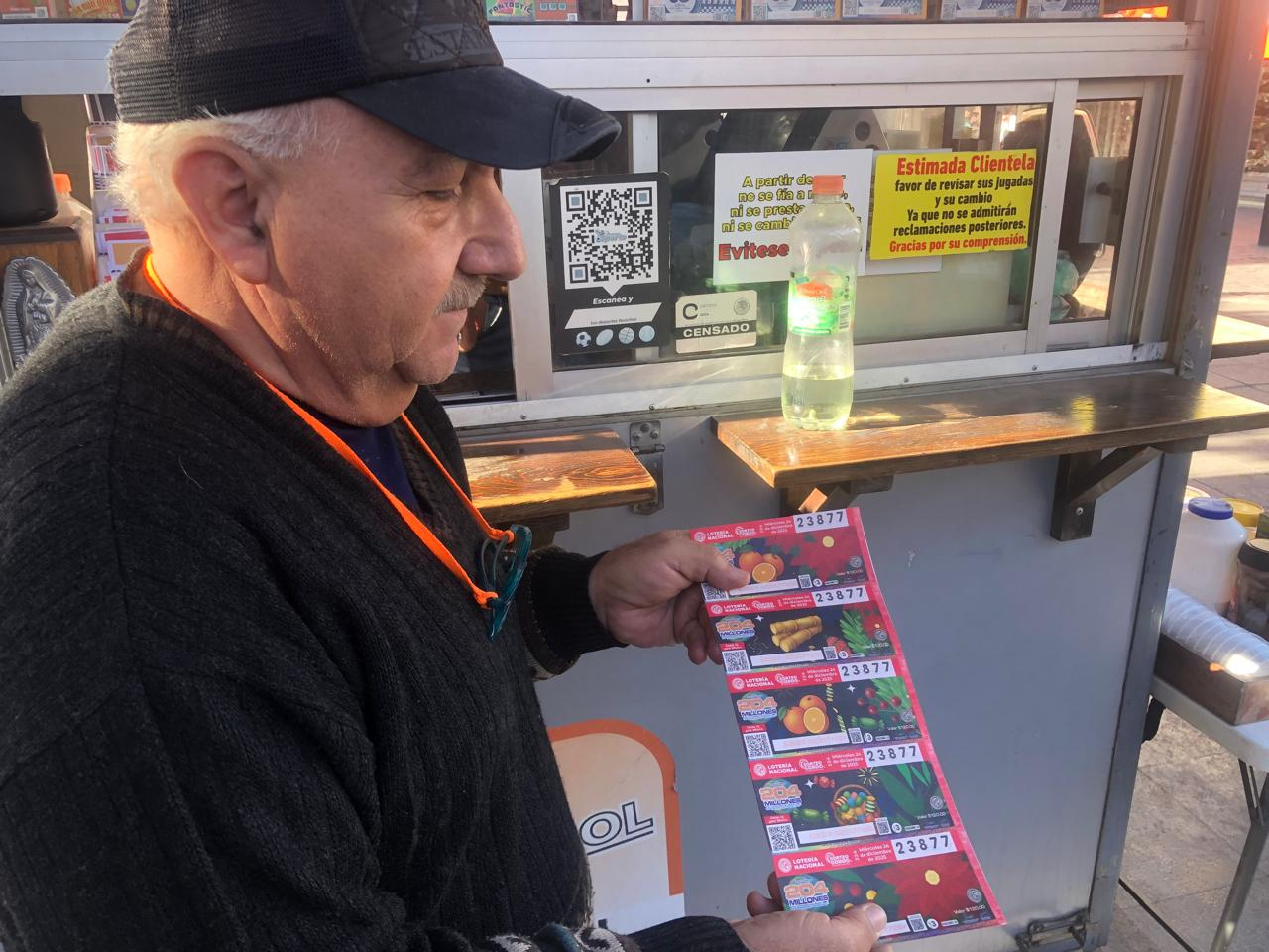 Los boletos para el sorteo navideño de la Lotería Nacional del 24 de diciembre ya están disponibles en el puesto ubicado en Calle Cuarta y Libertad, justo a un costado de la Catedral de Chihuahua. Alberto Labra Ubanda, vendedor con 52 años de experiencia, confirmó que el premio mayor asciende a 204 millones de pesos, distribuidos en cuatro series.