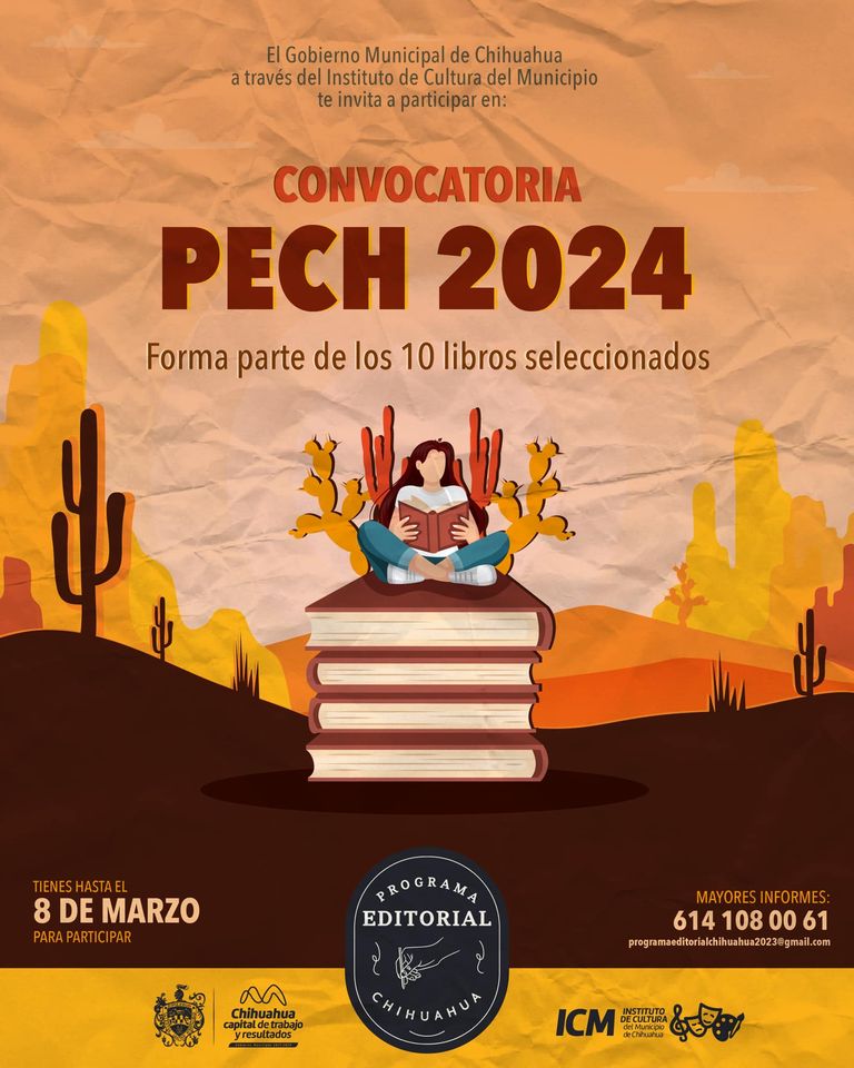 Chihuahua, Chih. A 17 de enero de 2024.- El Gobierno Municipal de Chihuahua, a través del Instituto de Cultura del Municipio, anuncia la apertura de la Convocatoria del Programa Editorial Chihuahua (PECH) 2024, iniciativa que refuerza el fortalecimiento cultural de la comunidad.
