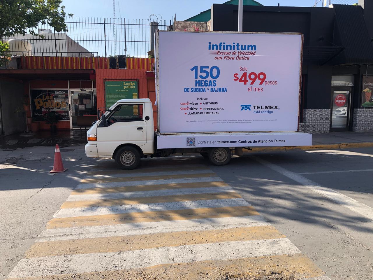 Esta mañana, un vehículo de una empresa de publicidad móvil causó indignación entre los transeúntes al estacionarse sobre el paso peatonal en la intersección de las calles Quinta y Aldama, en pleno centro de la ciudad. El camión, que llevaba publicidad de la empresa Telmex, obstruyó el paso de peatones alrededor de las 9:00 a.m.
