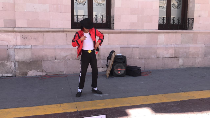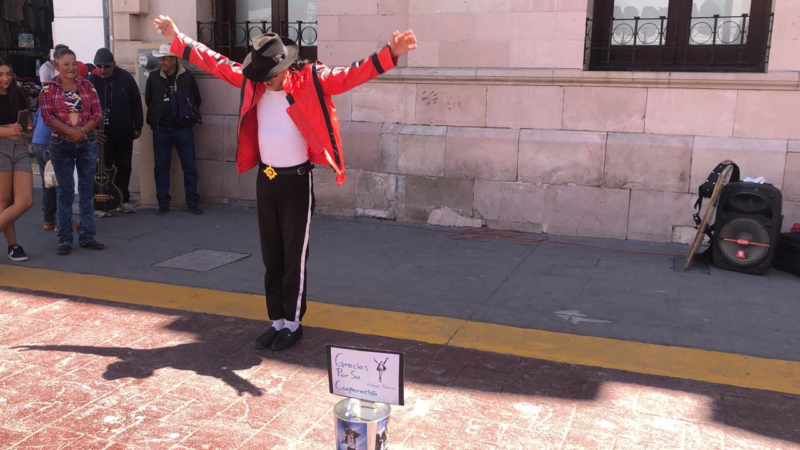 En la Liber, en centro de la ciudad de Chihuahua, un talento ha capturado la atención de los transeúntes y ha dejado a muchos sorprendidos con su impresionante habilidad para imitar al legendario Michael Jackson. Bajo el nombre de Alex Jackson, Alexis Moreno, originario de Ciudad Juárez, ha estado deleitando a los espectadores y ganándose unas monedas con su increíble talento.