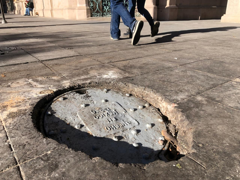 Alcantarilla Hundida en el Centro de Chihuahua Representa un Peligro para los Peatones