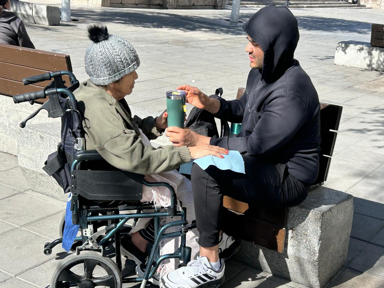Su dedicación es un ejemplo de amor filial y resiliencia, en un espacio público que se ha convertido en su segundo hogar.