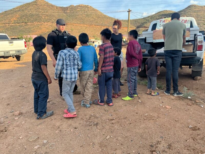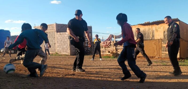 Chihuahua, Chih. A 17 de julio de 2024.- Policías municipales adscritos a la Unidad de Atención a Pandillas (UAP), trabaja con niñas, niños y adolescentes de los asentamientos indígenas de la ciudad, donde realizan charlas preventivas, promueven el deporte y realizan otras actividades que los alejen de las adicciones y prácticas antisociales.