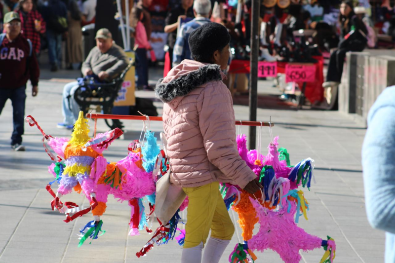 En medio del bullicio navideño de la Plaza de Armas y la Calle Libertad, una historia de resiliencia y trabajo honesto destaca entre los comerciantes. Cecilia Margarita Núñez Lozoya, una mujer que ha convertido la adversidad en una oportunidad, vende sus propias piñatas miniatura a 70 pesos cada una.