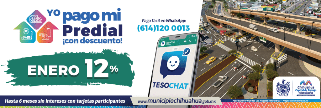 Los contribuyentes del Municipio de Chihuahua aún están a tiempo de obtener el descuento máximo del 12% en el pago del impuesto predial 2026, siempre que realicen su pago antes de que termine enero. Este beneficio forma parte de la campaña de descuentos por pronto pago, que busca incentivar la regularización fiscal y apoyar la economía familiar.