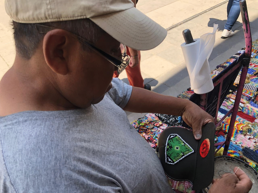 José Santos, uno de los artesanos, platicó con los medios locales sobre su trabajo. “Todo lo que tenemos aquí es hecho a mano, no usamos máquinas. Es nuestra herencia, lo que hemos aprendido de generaciones pasadas”, explicó mientras mostraba llaveros, diademas y gorras decoradas con diseños coloridos y detallados.