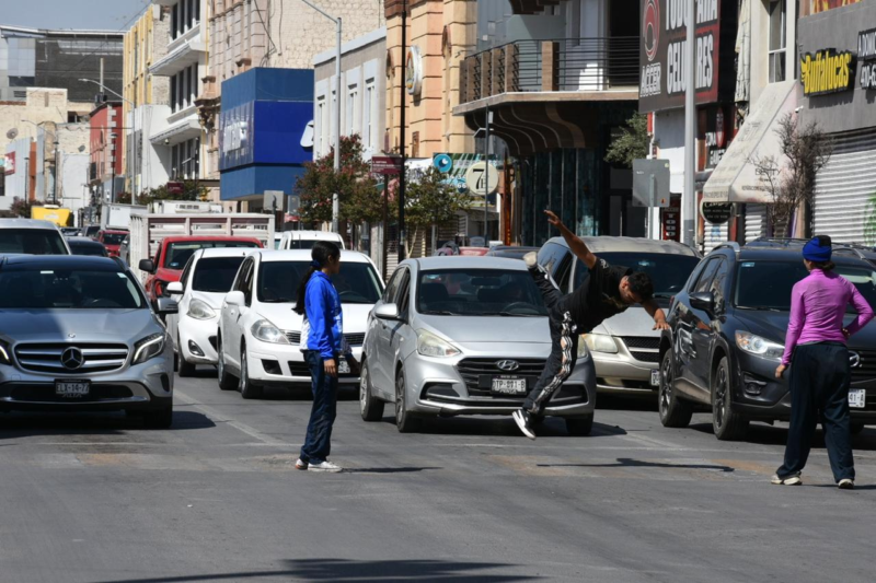 Bajo un sol inclemente que elevó la temperatura a 36 grados, tres jóvenes artistas callejeros se presentaron en la intersección de las calles Aldama y Vicente Guerrero en el centro de Chihuahua. Con el asfalto caliente bajo sus pies, estos talentosos bailarines de breakdance ofrecieron su arte a los conductores y transeúntes, buscando ganar unas monedas para llevar algo de comida a sus hogares.