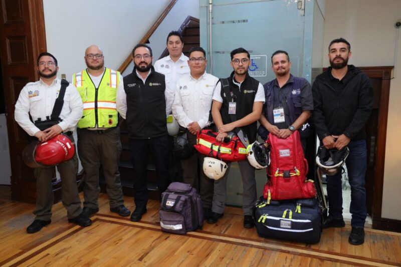 Estas seis personas, informó el Presidente Municipal, son expertos en rescate en espacios confinados y atención médica prehospitalaria, y para ayudar a la ciudadanía afectada, viajan con todo el equipo necesario para brindar los primeros auxilios.
