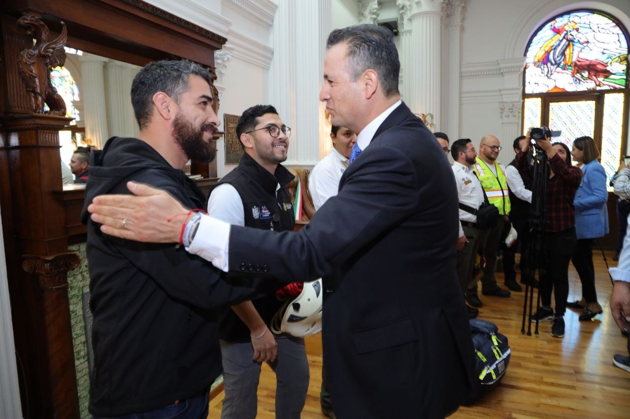 Estas seis personas, informó el Presidente Municipal, son expertos en rescate en espacios confinados y atención médica prehospitalaria, y para ayudar a la ciudadanía afectada, viajan con todo el equipo necesario para brindar los primeros auxilios.