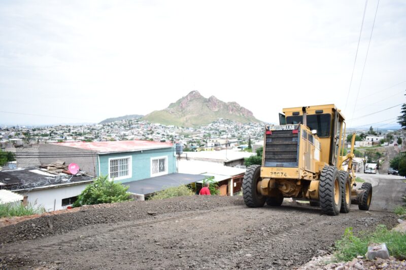 Chihuahua, Chih. A 13 de agosto de 2024.- El Gobierno Municipal que encabeza el alcalde Marco Bonilla, trabaja a través de la Dirección de Obras Públicas en la atención de calles en condición de terracería dentro de la colonia San Rafael, con el servicio de emparejamiento y colocación de material para mejorar la accesibilidad.
