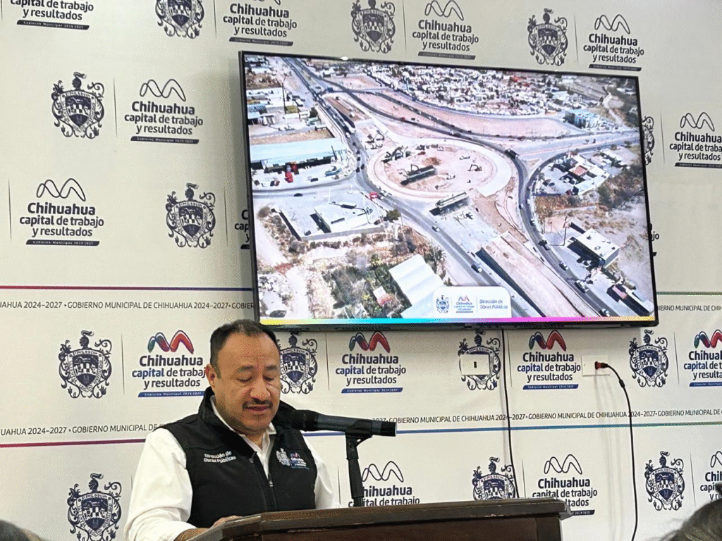 Durante la rueda de prensa semanal del Municipio, el director de Obras Públicas Municipales, Carlos Rivas, informó sobre los avances en los principales proyectos de infraestructura vial que actualmente se desarrollan en la capital, destacando la gasa de incorporación en Teófilo Borunda hacia el Periférico de la Juventud, el puente en Vialidad Los Nogales e Industrias, así como la obra en Fuerza Aérea y salida a Aldama.