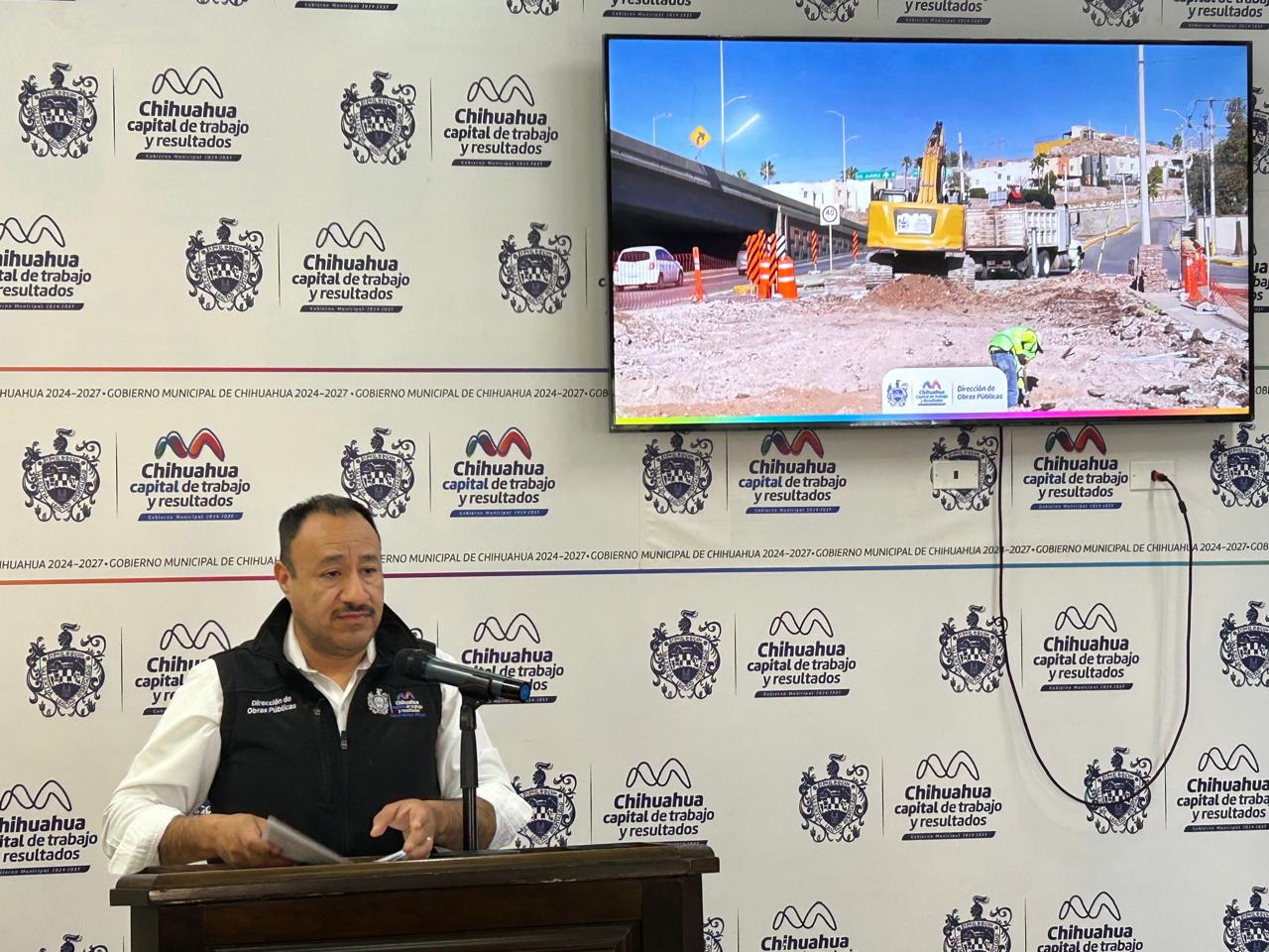 Durante la rueda de prensa semanal del Municipio, el director de Obras Públicas Municipales, Carlos Rivas, informó sobre los avances en los principales proyectos de infraestructura vial que actualmente se desarrollan en la capital, destacando la gasa de incorporación en Teófilo Borunda hacia el Periférico de la Juventud, el puente en Vialidad Los Nogales e Industrias, así como la obra en Fuerza Aérea y salida a Aldama.
