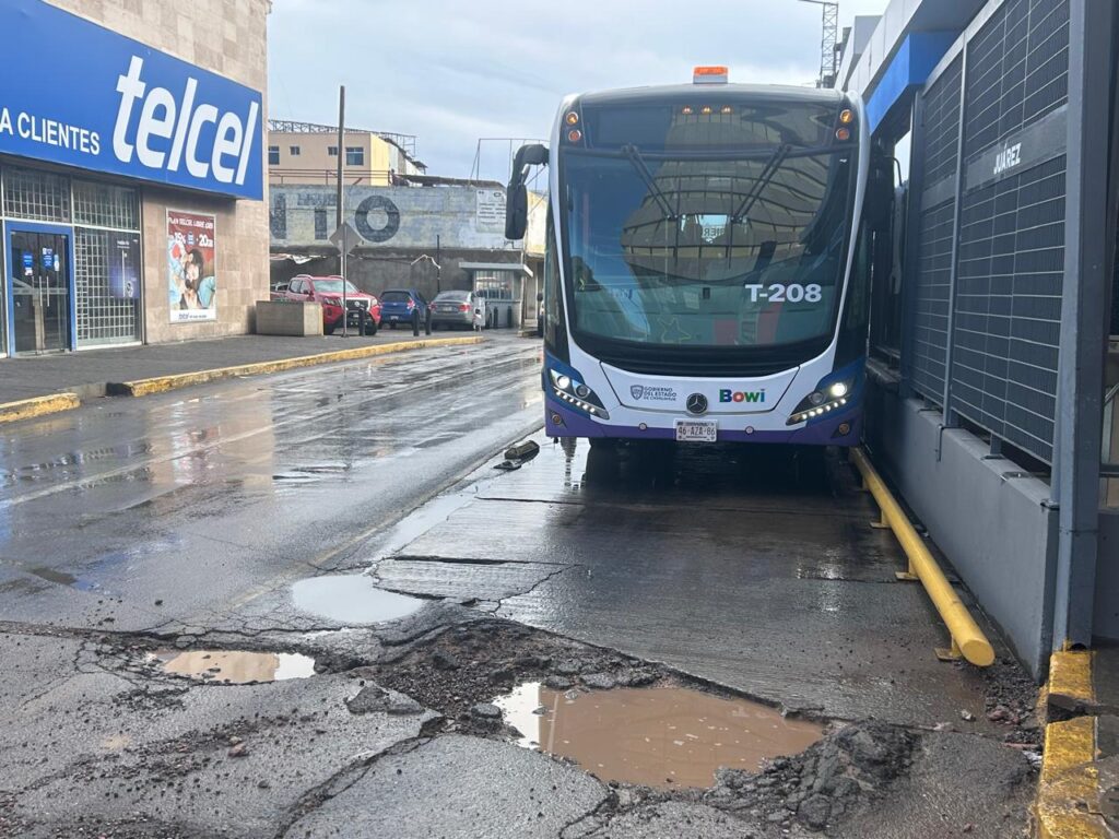 Un megabache ubicado en la intersección de Avenida Independencia y Avenida Juárez, justo en la ruta del transporte BOWI, se ha convertido en un riesgo crítico para las nuevas unidades recién adquiridas y en un obstáculo para peatones. Este problema, ya reportado con anterioridad por este medio 880noticias.com, se ha agravado tras las recientes lluvias, ampliando su tamaño y profundidad.