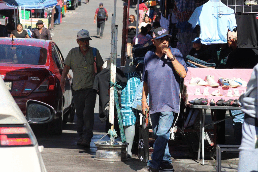 De acuerdo con lo observado en la zona, diversos locatarios colocan su mercancía sobre las aceras, reduciendo o anulando por completo el espacio destinado a peatones. Esta situación ha generado que hombres, mujeres y personas mayores tengan que caminar entre los automóviles para poder avanzar, incrementando el riesgo de sufrir algún accidente.