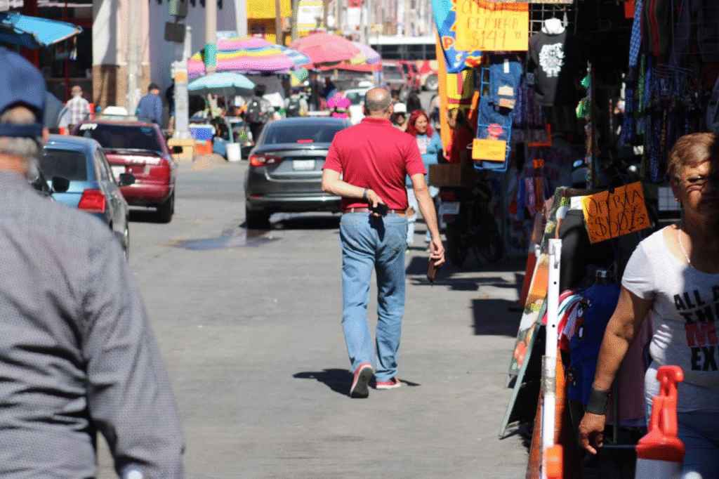 En pleno Centro Histórico de Chihuahua, particularmente sobre la calle Cuarta y General Trias, ciudadanos han señalado una problemática que se ha venido presentando desde hace tiempo: la ocupación total de banquetas por parte de vendedores, lo que impide el libre tránsito peatonal y obliga a las personas a descender a la calle, exponiéndose al paso constante de vehículos.