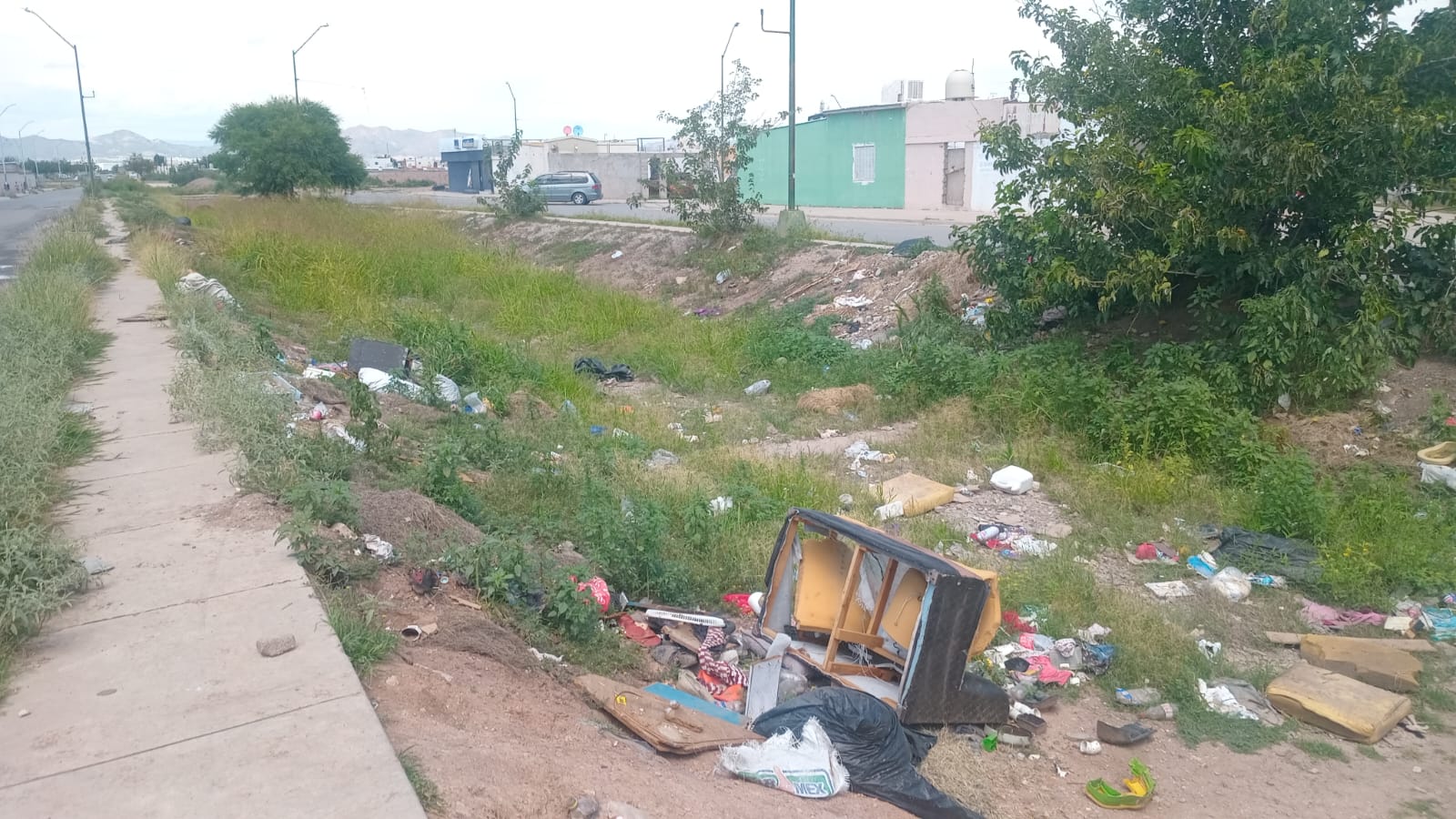 Chihuahua, Chih.— En la colonia Punta Oriente, específicamente en la zona de la avenida Angostura, frente a un parque y junto a una escuela, vecinos han denunciado la formación de un basurero clandestino que afecta gravemente la imagen y salubridad del área.