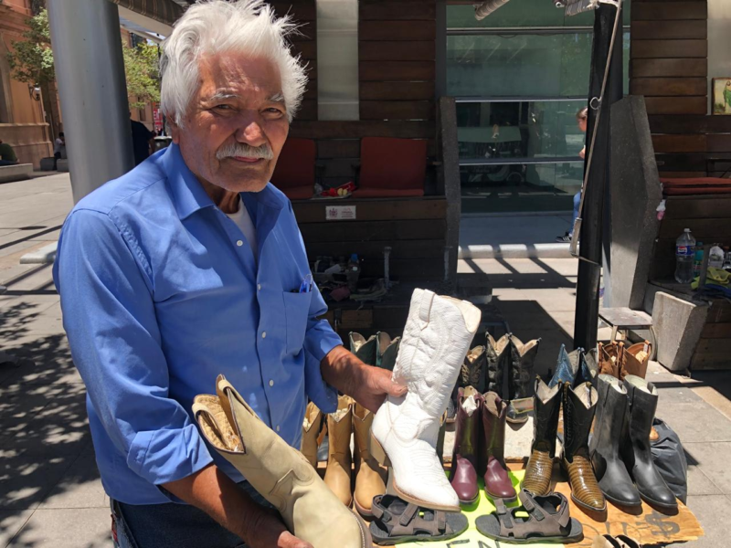 Chuy se dedica principalmente a la reparación y fabricación de calzado. Sin embargo, para ayudar a cubrir los gastos de la educación universitaria de su hija, ha decidido vender botas vaqueras seminuevas. “Las necesidades tienen que cubrirse como sea,” comenta Chuy, mientras explica que las botas que vende están en excelente estado, parecieran nuevas.