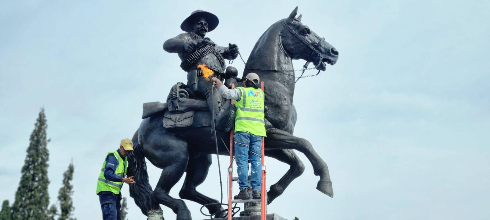 En el marco de los festejos por el día de la Revolución Mexicana, el Gobierno Municipal, a través de la Dirección de Mantenimiento Urbano, realizó limpieza y manutención de monumentos emblemáticos y representativos del 20 de noviembre, como la escultura de Francisco Villa y la glorieta que está entre la avenida Universidad y División del Norte; La Adelita, Glorieta de Felipe Ángeles, Rotonda de los Hombres Revolucionarios y Cenotafio (Capilla de Fco. Villa); estos dos últimos ubicados en el Parque Revolución.