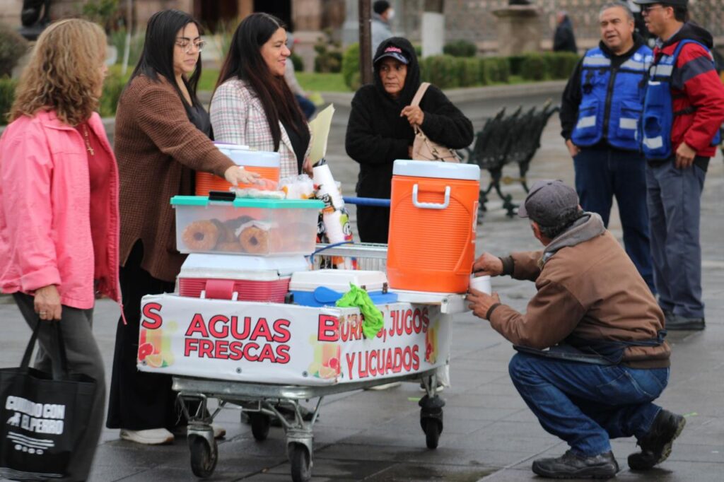 Con el frío que azota la región, un vendedor ambulante se ha convertido en un personaje icónico del centro histórico. Con un carrito de supermercado adaptado, equipado con hieleras, termos gigantes y contenedores, ofrece burritos, donas, galletas, café, champurrado y atole, productos que han visto un aumento notable en sus ventas durante los últimos días.