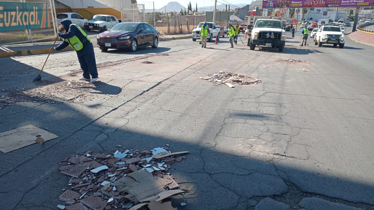 De acuerdo con el reporte de las autoridades, el incidente ocurrió cuando el conductor circulaba a alta velocidad y, al tomar la curva, varias cajas de azulejos se desprendieron de la unidad. Los escombros de cerámica se esparcieron sobre el asfalto, lo que generó al menos dos neumáticos dañados en vehículos particulares y múltiples maniobras evasivas por parte de conductores, quienes evitaron colisiones mayores.