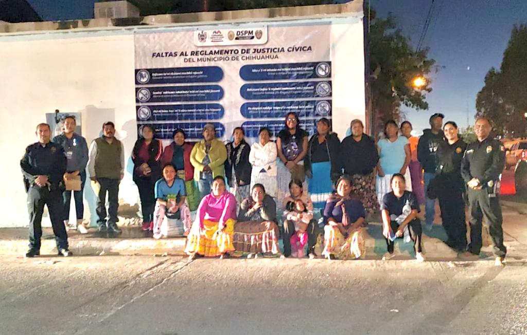 Chihuahua, Chih. A 7 de noviembre de 2023.- Para que todas las personas dentro del municipio de Chihuahua conozcan las faltas más comunes contempladas en el Reglamento de Justicia Cívica, el Gobierno Municipal a través de la Dirección de Seguridad Pública, inició la difusión en asentamientos de la comunidad indígena de la ciudad, para prevenir estos delitos.