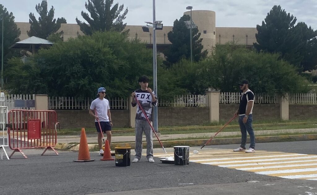 “Queremos que se note que estamos aquí, que no sólo organizamos fiestas, sino que también dejamos rastro en el concreto”, comentó uno de los integrantes del comité estudiantil, mientras sostenía un rodillo aún manchado de amarillo.