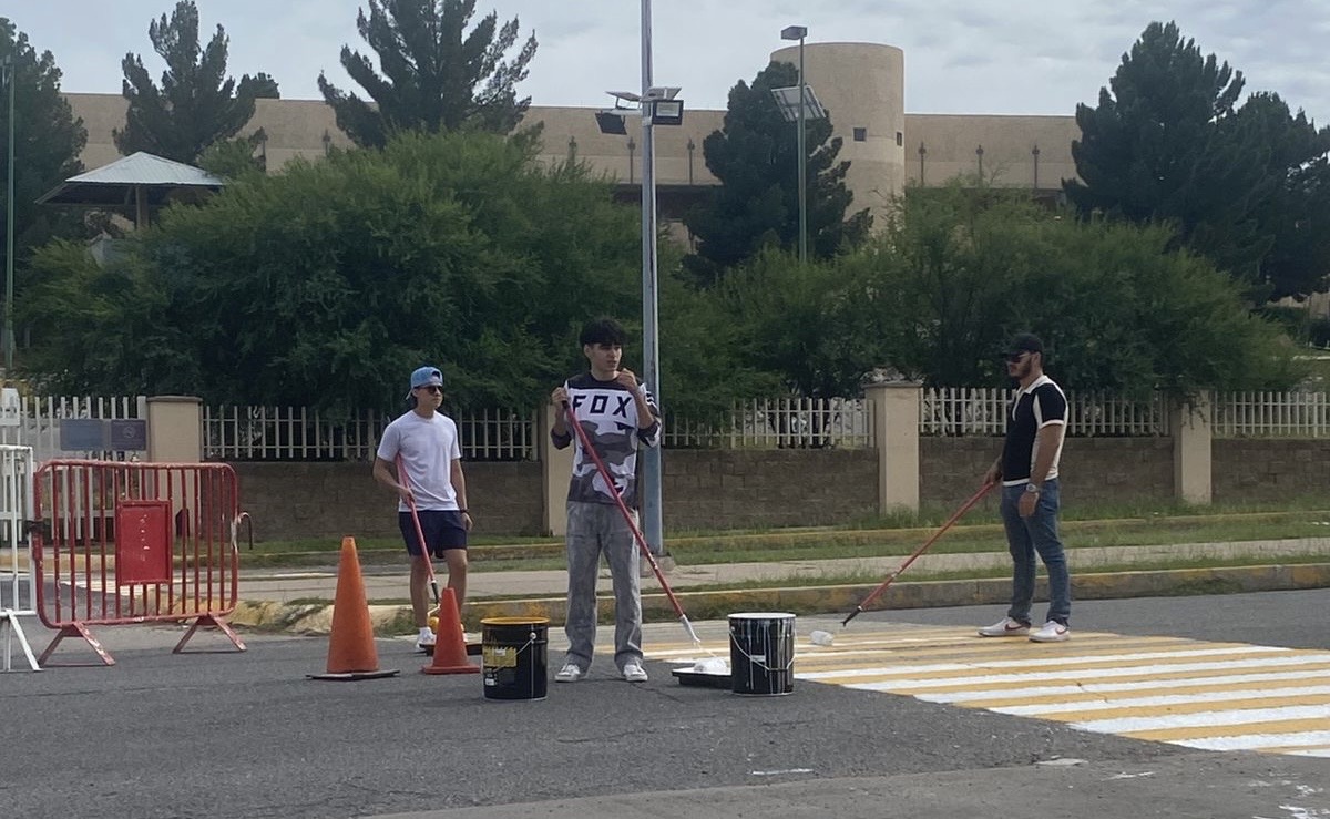 CHIHUAHUA, CHIH. — El pasado fin de semana, las calles internas del campus Dos de la Universidad Autónoma de Chihuahua (UACH) recibieron un baño de pintura y voluntad. La Sociedad de Alumnos de la Facultad de Contaduría y Administración (SAFCA), en coordinación con la presidencia municipal con el apoyo de la gestora de la Lic Teresita Cisneros y la dirección de la facultad, se dio a la tarea de renovar las cebras peatonales del plantel, en un esfuerzo conjunto que mezcla civismo, gestión estudiantil y una pizca de pintura amarilla.