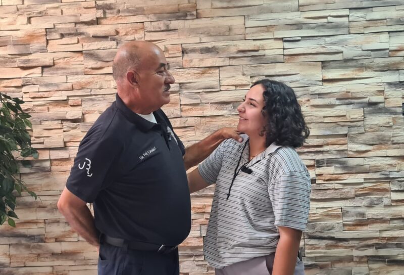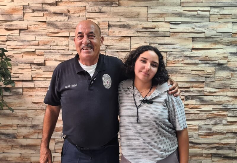 “Mi abuelito significa mucho para mí, me siento orgullosa de él y muy protegida porque siempre me ha cuidado y también a las personas de la ciudad, a los jóvenes y a mi familia. Lo quiero mucho porque es un policía muy entregado a su trabajo, lo acompaño a muchas partes y veo que trabaja muy duro por los demás. Lo apoyaré siempre”, expresó por otra parte su nieta Alejandra Fierro.