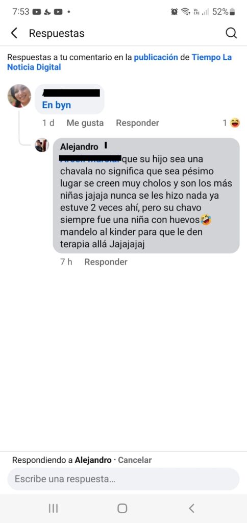 En la misma fecha, un menor de 14 años, internado por consumo inicial de cannabis, habría referido situaciones irregulares en su tratamiento. Durante el encuentro, Anhuar Campos, señalado como responsable del centro, habría interrumpido las conversaciones entre familiares con comentarios despectivos.