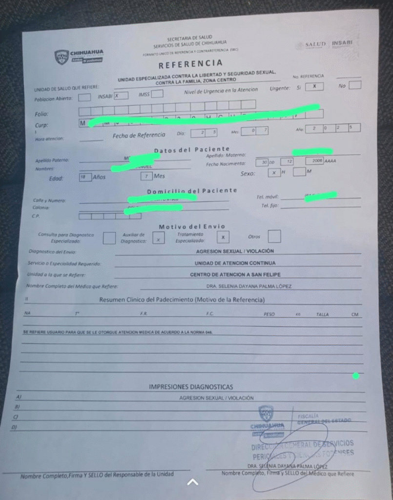 La familia procedió a retirar al joven y posteriormente recibió intimidaciones por parte de otros internos del establecimiento. El 25 de julio acudieron a la Fiscalía del Estado acompañados por representantes de otra institución de apoyo, donde personal médico certificó lesiones físicas consistentes con maltrato.