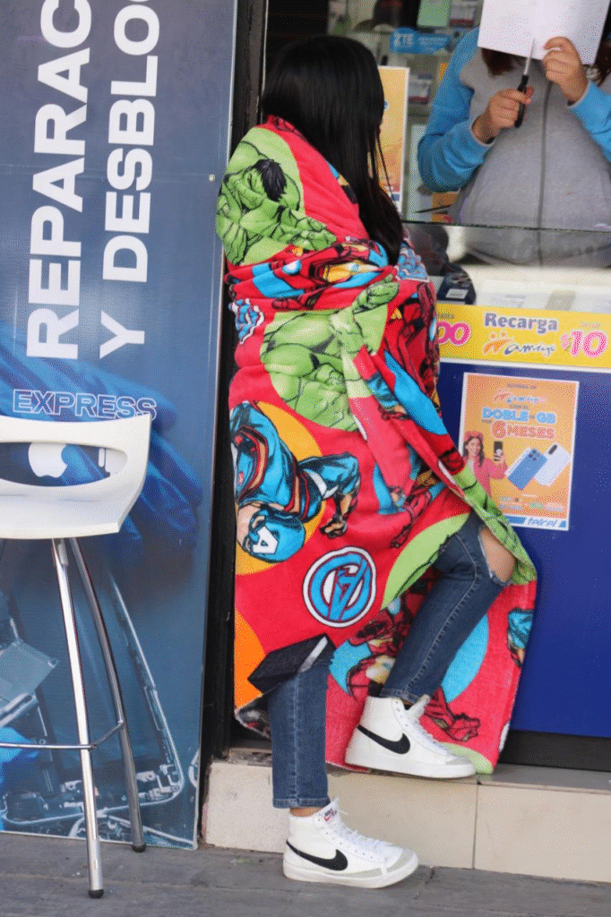 El termómetro marcó 9°C esta madrugada, y en las calles del centro ya se siente: el frío llegó para quedarse. Mientras el pronóstico anuncia un día soleado con máxima de 27°C, las mañanas y noches obligan a los chihuahuenses a sacar abrigos, suéteres y hasta cobijas. En la calle Libertad, una joven trabajadora fue vista envuelta en una cobija mientras esperaba clientes en su local.