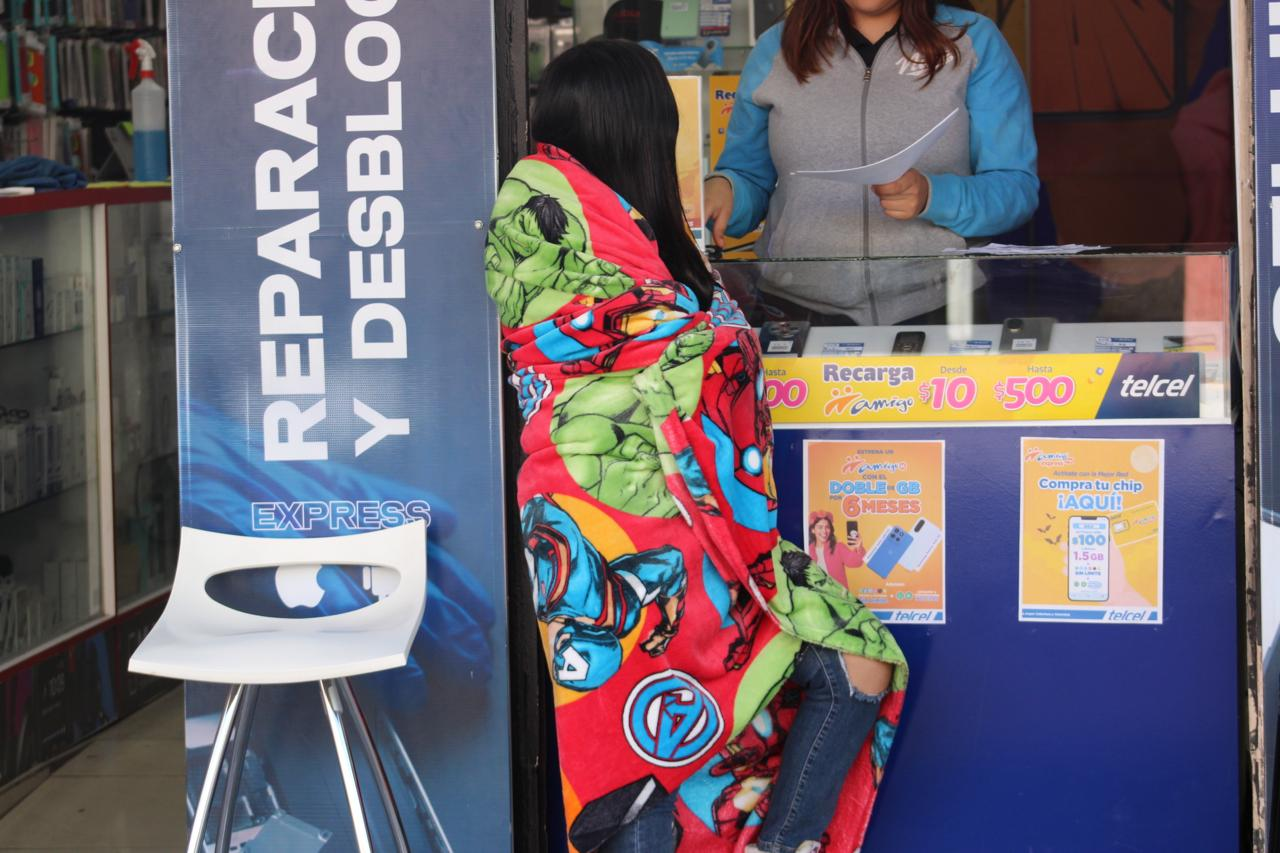 El termómetro marcó 9°C esta madrugada, y en las calles del centro ya se siente: el frío llegó para quedarse. Mientras el pronóstico anuncia un día soleado con máxima de 27°C, las mañanas y noches obligan a los chihuahuenses a sacar abrigos, suéteres y hasta cobijas. En la calle Libertad, una joven trabajadora fue vista envuelta en una cobija mientras esperaba clientes en su local.