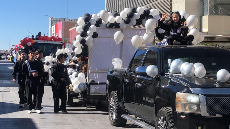 Carros alegóricos y un gran tráiler adornado con globos y colores vivos sirvieron como el escenario móvil de los deportistas, quienes ofrecieron al público muestras de sus disciplinas, desde movimientos de artes marciales hasta gestos técnicos de marcha. Entre aplausos, porras y música, la comunidad chihuahuense demostró su admiración y apoyo.