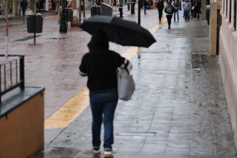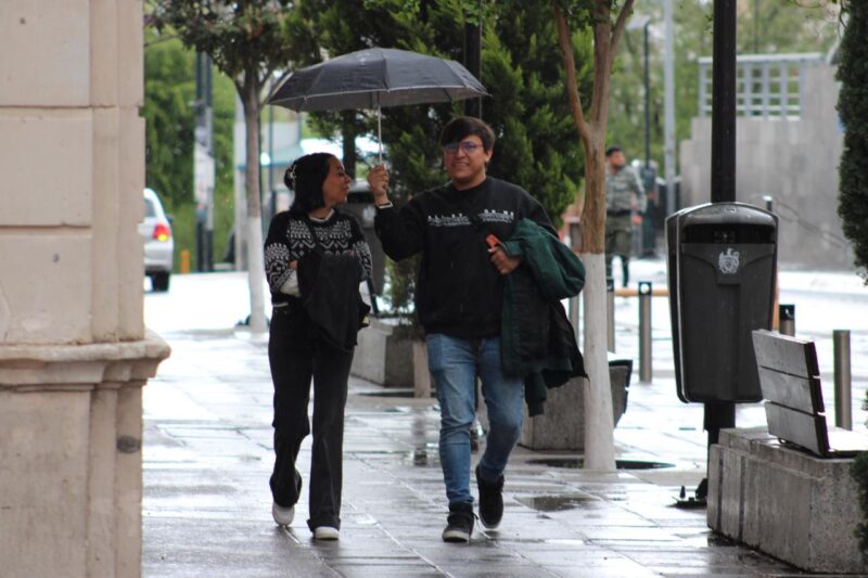 Las calles del primer cuadro de la ciudad, como la Plaza de Armas y la calle Libertad, fueron testigos de un ir y venir constante. “Ayer andábamos en manga corta; hoy volvimos a sacar los abrigos. Así es Chihuahua”, comentó José Luis, un chihuahuense, mientras nos atendía bajo un paraguas.