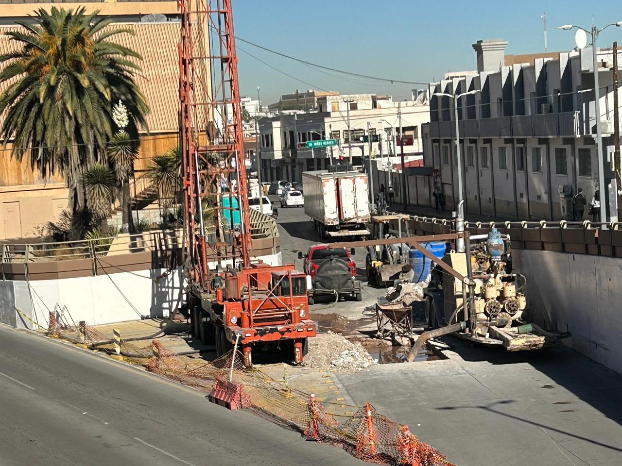 Autoridades cerraron la calle Ignacio Camargo, en el centro de la ciudad, debido a los trabajos de emergencia para reparar una fuga de agua detectada junto al Hotel Palacio del Sol. El cierre afecta el tramo ubicado en la intersección de Independencia y la “Y” que conecta con la avenida Niños Héroes, donde se encuentra el hotel.