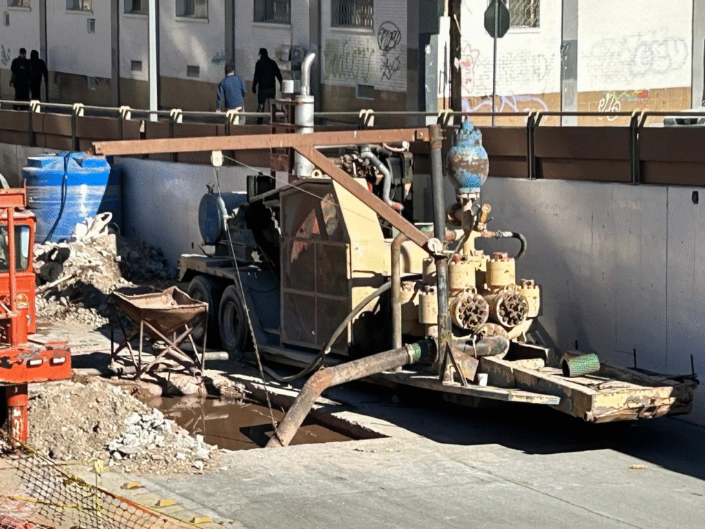 Para resolver el problema, se desplegaron equipos especializados, incluyendo una motobomba industrial de diésel y una grúa de extracción, diseñados para retirar grandes volúmenes de agua acumulada. Estos trabajos, que comenzaron desde temprano, buscan mitigar los riesgos de humedad en la estructura del Palacio del Sol y evitar mayores afectaciones en la zona.