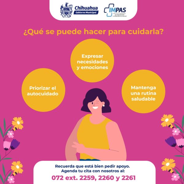 Chihuahua, Chih. A 10 de mayo de 2024.- En este Día de las Madres, el Gobierno Municipal de Chihuahua, a través del Instituto Municipal de Prevención y Atención a la Salud (IMPAS), busca resaltar la importancia del cuidado salud mental materna, reconociendo que el bienestar emocional de la madre es fundamental para su propia felicidad y realización personal.