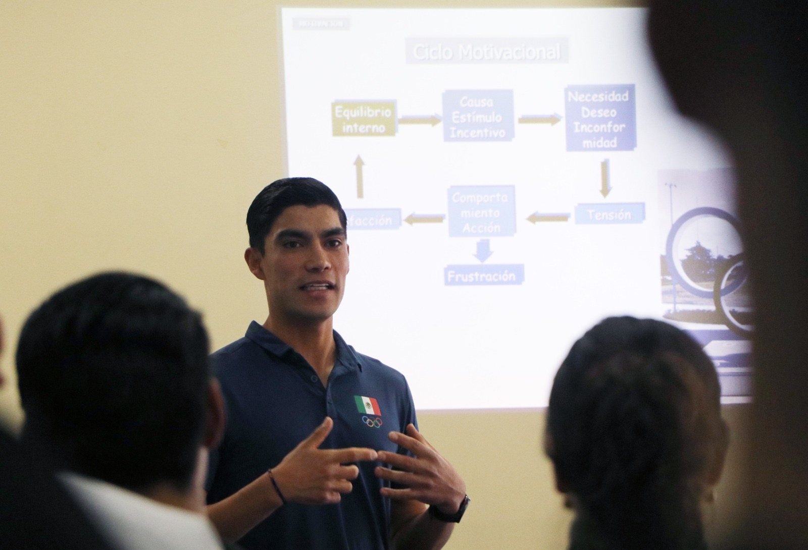 Chihuahua, Chih., a 14 de abril de 2024.-* En las instalaciones del centro deportivo Tricentenario, el marchista olímpico Andrés Olivas encabezó una serie de pláticas dirigidas a deportistas, entrenadores y miembros de la comunidad deportiva.