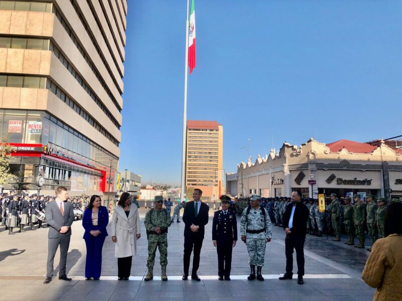 Con un ambiente de respeto y orgullo, este miércoles se realizó un acto cívico en las calles Libertad e Independencia para celebrar el 108 aniversario de la promulgación de la Constitución Mexicana de 1917. El alcalde Marco Bonilla Mendoza encabezó el evento, que inició con la entonación de los himnos nacional y de Chihuahua, reuniendo a autoridades locales, representantes del Ejército Mexicano y funcionarios municipales.