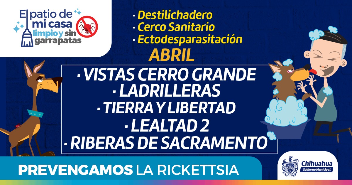 Chihuahua, Chih. A 26 de marzo del 2024.- Con el compromiso de mantener espacios limpios y saludables, el Gobierno Municipal, a través del Instituto Municipal de Prevención y Atención a la Salud (IMPAS), informa que en el mes de abril el programa “El Patio de Mi Casa” acudirá a las colonias Vistas Cerro Grande, Ladrilleras, Tierra y Libertad, Lealtad II y Riberas de Sacramento.