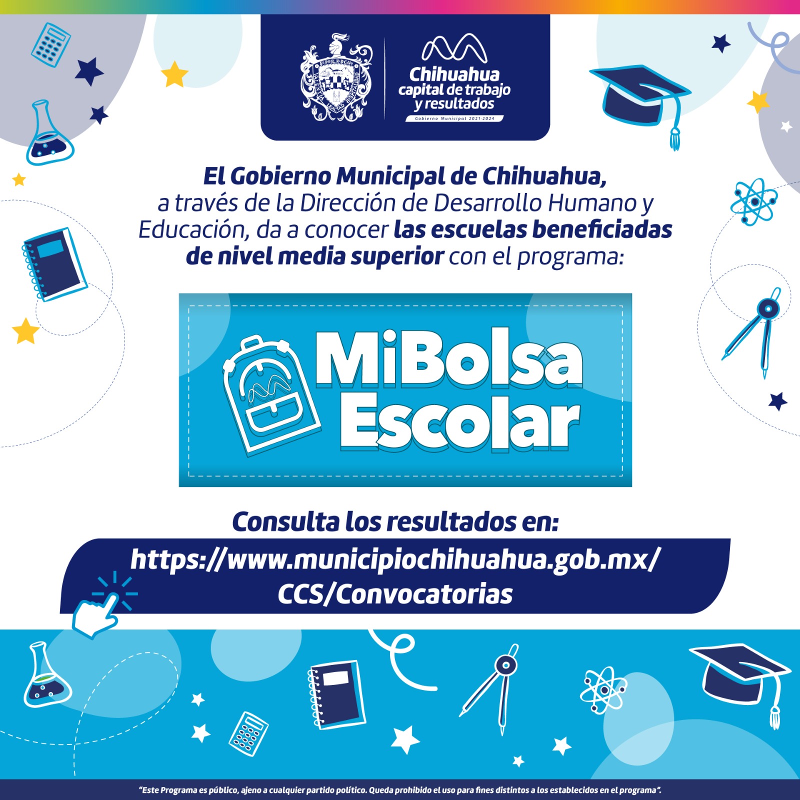 Chihuahua, Chih. A 25 de febrero de 2024.- Con el objetivo de contribuir a la economía de las familias del municipio de Chihuahua el Gobierno Municipal de Chihuahua a través de la Dirección de Desarrollo Humano y Educación da a conocer las escuelas públicas que serán beneficiadas con el programa “Mi Bolsa Escolar Chihuahua”.
