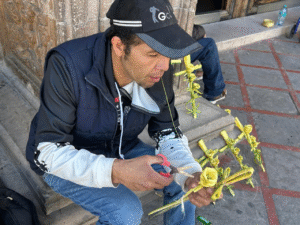 Nota y fotos por: Silver Juárez Arce Frente a la imponente Catedral de Chihuahua, Abner, un artesano dedicado, pasa sus fines de semana transformando hojas de palma tropical en delicadas cruces con rosas, piezas que no solo embellecen la tradición religiosa, sino que también le han ayudado a salir adelante en momentos de necesidad. “Ahorita … Sigue leyendo Cruces y rosas de palma: el oficio que ayuda a Abner a salir adelante