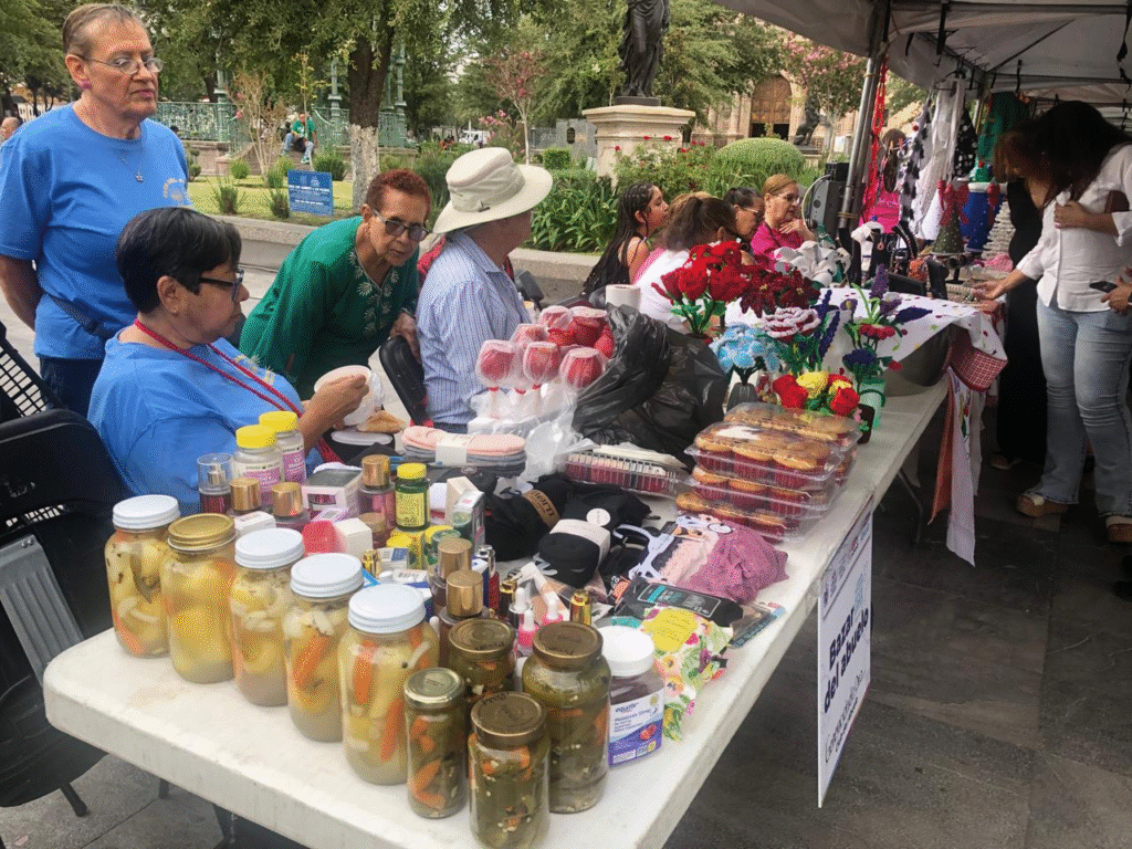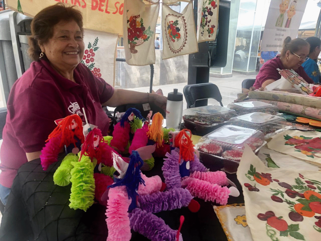 Entre los puestos, Irma Contreras Reynoso, una de las participantes, compartió que ofrece chile curtido, chapeteada y otros productos como bizcochitos y pan ranchero, todos elaborados por ella y sus compañeras. También se pueden encontrar manualidades y otros alimentos tradicionales, todos hechos con el esfuerzo y cariño de los adultos mayores.