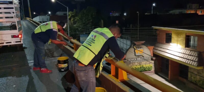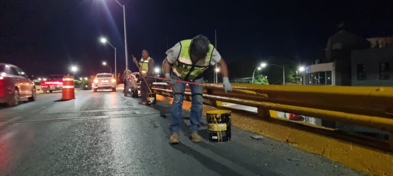 Pensando en la ciudadanía, el Gobierno Municipal que encabeza Marco Bonilla, realizó este trabajo principalmente de 11:00 de la noche a 4:00 de la mañana, para evitar congestión vial y molestias entre los conductores. Previo a la pintura, limpiaron los barandales con hidrolavadoras, garantizando un acabado impecable.