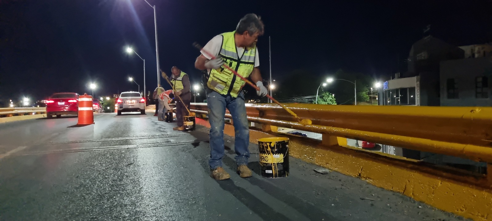 Pensando en la ciudadanía, el Gobierno Municipal que encabeza Marco Bonilla, realizó este trabajo principalmente de 11:00 de la noche a 4:00 de la mañana, para evitar congestión vial y molestias entre los conductores. Previo a la pintura, limpiaron los barandales con hidrolavadoras, garantizando un acabado impecable.